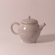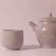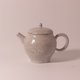 灰御影土制成的小茶壶,土本身带有石英颗粒的质感,粗糙富有细节,上微透明的乳白色釉,强调了土中带有的铁点。