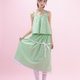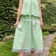 cherrywine Green papaya青木瓜半裙绿格蕾丝丝带宽松中长女