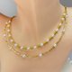 直径约4.5-5mm的天然淡水珍珠呈现出强光炫彩的天然美感,颗颗珍珠有强光炫彩,虽有微瑕微生长纹,但是整体间隔排列成一线并由s925银14k注金的切花配件。间隔排列呈现出微波般的色彩层次感。纱织小姐为其配以新型磁吸扣,形成总长约43cm的双圈华丽轻奢款项链毛衣链。你可以一边摇曳生姿,一边简约美好,可以点亮你的所有简单衣裳。美好的天然淡水珍珠表面呈现出难以名状的炫彩色调,自然光下每一颗都分别呈现出各自的七彩光芒炫彩,皮光细腻,微瑕炫彩,似镜面可照出人影,美得不可方物。