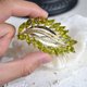 **日本中古二手珠宝首饰 高贵优雅 绿水晶树叶造形镀银胸针 **