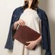 容易“变化”的拉伸变色皮革(pull up leather)其特征为能让您感到每天皮革变化的过程。越使用越能培育出属于自己的独特资料夹。