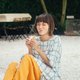 - Pale blue block cocoon dress The rounded silhouette creates a trendy look. This season’s full-length style can provides a great voluminous look. Model is 163 cm.