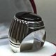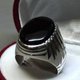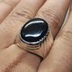 天然也门黑玛瑙男士戒指 925 纯银 硕大黑玛瑙戒指