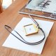 完全没有多余装饰的设计,也推荐给男性或年长者们。在办公室一起使用或是做为新奇品送礼的话都很令人开心吧。即使选同样树种,每一个的木纹走向及色泽都不同,是独一无二的。只有原木材的奢侈,在日常好好地享受吧。颈挂带是与木质感相配的皮革制成,长久使用也不显脏,越使用越增加风味并亲近肌肤。