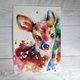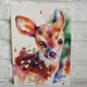 水彩画上有一只美丽的小鹿,画在 100% 棉纸上,尺寸为 19/27 厘米。 (7|10 寸。)。一幅明亮、积极的小鹿画会带给你好心情。色彩缤纷的艺术将装饰室内并增添创意。送给自己和您所爱的人的绝妙礼物。