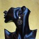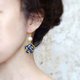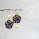 这款是深蓝色配粗金线的梅花结与圆珠不对称耳勾。