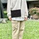 由天然月桃鞘编织而成,包体正面以人字编织技法,并结合台湾设计品牌‘减简手制jainjain’印花布,形塑城市行旅自在风貌,黑灰白无彩调性,随意斑驳肌理,让月桃鞘的木质编织纹理更显时尚。背面以宽版织带经纬编织,两种视觉风格依穿搭使用,配以植鞣皮背绳,可做肩背、斜侧背、手持,也可搭配皮带系于腰间以腰包使用,一包三种用途。可放入手机、悠游卡、小零钱包、无线耳机等随身小物。