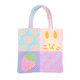 这款包包由各种图案的斜纹拼布拼接而成。