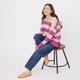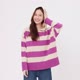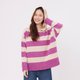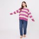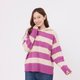 帶些休閒感的連帽針織毛衣,大色塊的條紋更顯活力。