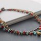 ♥泰国100%手工编织 这是手工编织的项链,用深棕色棉蜡线编织而成,配以绿松石和珊瑚石,黄铜珠,链条和黄铜叮当铃。关闭使用铜钟 ♥项链长17英寸