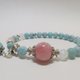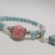 **Larimar + Pink Opal +Moonstone Silver Bracelet**