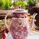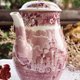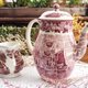 费拉拉梅紫红色骨瓷百年古董茶壶,
