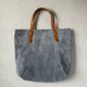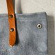 这款 S 尺寸的圆形托特包,采用了牛床绒面革与极厚油蜡鞣制皮革制成。