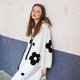 - 白色长版帽T,缝制大花朵,轻松舒适。宽松版设计,中厚度,面料柔软。三种尺寸可挑选。