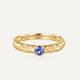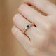 在拉丝纹金质戒身上,叶脉雕纹缓缓蔓延,如同一段静静成长的心念。中央镶嵌一颗 0.178ct 靛蓝蓝宝石,低调闪耀,仿佛森林的早晨,在草地上的露水。