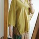 泰国纯棉侧边绑带宽袖上衣 土黄色