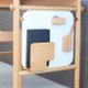 书桌侧边有着调和木头颜色的白板。附有书架,上下皆有开孔,只要挪一挪开孔位置就可以简单改变架子方向。改变方向就左右都可使用收纳空间,解决放置空间的烦恼呢。另外也附有可放入夹子等小物的置物盒与笔筒,作业或读书时需要的文具等整齐收纳,就能活用桌面空间。若收纳空间在桌上就会显得狭隘,这样的用心真令人感谢呢。