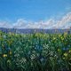The painting of the collection of small flowery landscapes. The painting represents a field of blossoming flowers. A flowering meadow painting with chamomile, may be an excellent addition to your art collection. And also it can be a great gift that will please you with its rich colors and the cheerful intrigue of the flower landscape of the image.