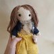 留着棕色长发的黄色宽裤娃娃