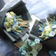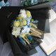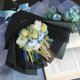 - 蓝绿黄白色系为主搭配深灰色包装的手拿型干燥花束