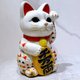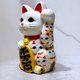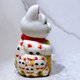清水烧手绘招财猫,工艺细腻、色绘精致,白色底釉上以红、黑、黄三色勾勒出活泼的线条与光影,呈现出典雅又鲜明的视觉效果🎨🐱。