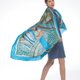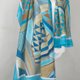 Hand painted scarf. Luxurious silk shawl in modern style. Blue brown geometric composition painted on silk. Birthday gifts for her/ Art lovers gift idea/ Wearable art. Extravagant silk shawl in aqua blue and ocher palette.Geometric scarves. Painted scarves. Extravagant silk shawl wrap. Silk painting by Klara