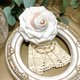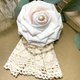 将蕾丝加入包裹着棉质珍珠的玫瑰旋钮作品中。 可爱时尚的胸针花饰,饰有珍珠链。 可以作为饰物挂在包包等上。