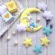 - This Moon Mobile will be an unusual and beautiful decoration of a nursery or a crib. It can hangs on a mobile holder in a crib or decorate a wall of the nursery. Also, it will be a cute gift for Baby Birthday, Baby Shower or Baby Christening . You can choose a moon and stars of a different color. Please write your color wishes in the message to the order.