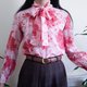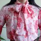 复古农舍印花衬衫,蝴蝶结领衬衫,纽扣领衬衫