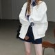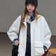 领子设有领袢,可翻可立,工装感牛仔夹克,落肩宽松版型