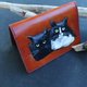 皮革钱包上的猫肖像、定制皮革钱包、宠物爱好者礼物