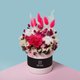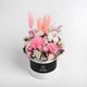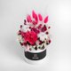 桃红 : 永生康乃馨、蓬莱松、芒萁;干燥棉花、星辰、丛星果、开口笑、小星花、兔尾草