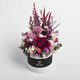 深紫 : 永生康乃馨、蓬莱松;干燥索拉玫瑰、星辰、丛星果、卡斯比亚、千日红、松雪梅