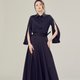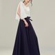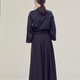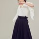 腰带是绑带的方式,束紧腰后将皱折推至右腰空间,让右腰带自然皱折,使裤摆呈现更明显的波浪。
