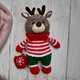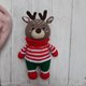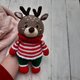 驯鹿玩具。手工钩针柔软有趣的驯鹿,带围脖和
