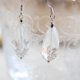 Earrings made from a clear crystal tumble that looks like ice.