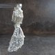 在略微透光的白色绉纱布料上,以复古珠饰与光泽感的白色绣线,如同描绘马赛克图纹般层叠刺绣。