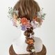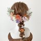这款发饰以米白色圆形大理菊为主角,搭配橘色菊花、小花及黄色玫瑰等,营造出丰富饱满的视觉效果。