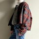 雪林小木屋/红棕色苏格兰格子毛料短版逮斗篷披风感小外套/Wool