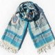 ▲喀什米尔靠近喜马拉雅山,为了对抗特殊的酷寒气候,水煮羊毛是喀什米尔利用当地自然环境发展出来的一种细致的工艺, 当地海拔高,水的沸点低,早晨在太阳上升时,将羊毛制品,放入融化的高原雪水中浸泡,之后加热沸煮。到了傍晚太阳下山时,再把羊毛制品在月光下晒,经由繁复工续后的产品, 不但可以清除掉一些杂质,羊毛产生收缩,纤维之间更加地紧密,最后经由妇女手工编织及刺绣,呈现一件件颜色及绣法独特的织品