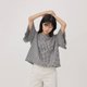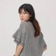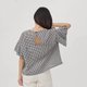 - - 基本舒適圓領 - 純棉經典格紋印花 - 落肩荷葉袖遮手臂 - 日系穿搭 - 台灣設計少量製造