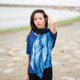 - 手工蓝染拼接上衣,布面垂坠特性呈现出海浪波澜, 并以不规则的切接表现出海岸与海的交界线, 波澜布面的特意留长成了长长的海浪线条。