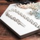以带有棱角的厚实链圈构成,线条俐落的结构充满刚毅气息,更使手链随着不同角度变换光泽,时而沉稳时而率性,展现大方独特的自信风格。