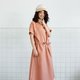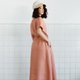 休闲亚麻收腰连身裙 - 鲑鱼色