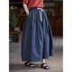 - 一条量超足的裤裙,近三米的用量,成就它有廓形、有质感的气质。它的气场让你自在,有安全感,给你带来大开大合的大气沉稳。松紧抽绳,宽宽的腰头,自然出来的生动感,腰内贴用了一块格子布做内贴,减少腰头的厚度,也增加一些色彩感。