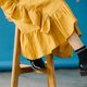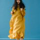 An evening piece trimmed with playful frills at the hem, Designed with long sleeves, this dress is made from a medium-thick linen. Cut for a voluminous A-line fit in a mid-length, it has a clean round neck, tied at the back of the long sleeves and discreet side-seam pockets.