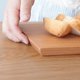 在偏小的砧板上切食物,为了感到不稳定而做出的安心设计。看起来小巧,但有有适度的重量,可在稳定状态使用。且侧面有向下向内斜切入的关系,手抓着侧边拿取移动切好的食材时,考虑到不会摇晃所做。这是便宜量产的砧板所没有的用心。