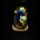 选用宝石蓝色的永生玫瑰与天蓝色永生蔷薇,配上白色与灰蓝色绣球花,并以银色百万星作点缀,加上LED灯饰,营造出错落有致,层次分明的效果。适合任何场合作为送礼及摆设,高贵典雅,一见倾心。