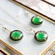 以黑色为底,两种绿色交织闪耀,鲜艳的色彩令人着迷的坠饰。