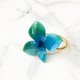 Bluegreen hydrangea on a high quality gold-tone pinky ring. Ring size available in US Size 5 or 6.